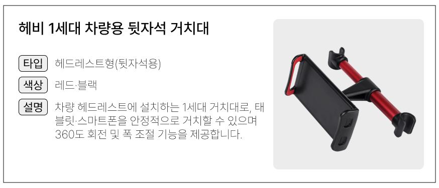 | 모델명 | 로건 헤비 헤드레스트 뒷자석 거치대 |