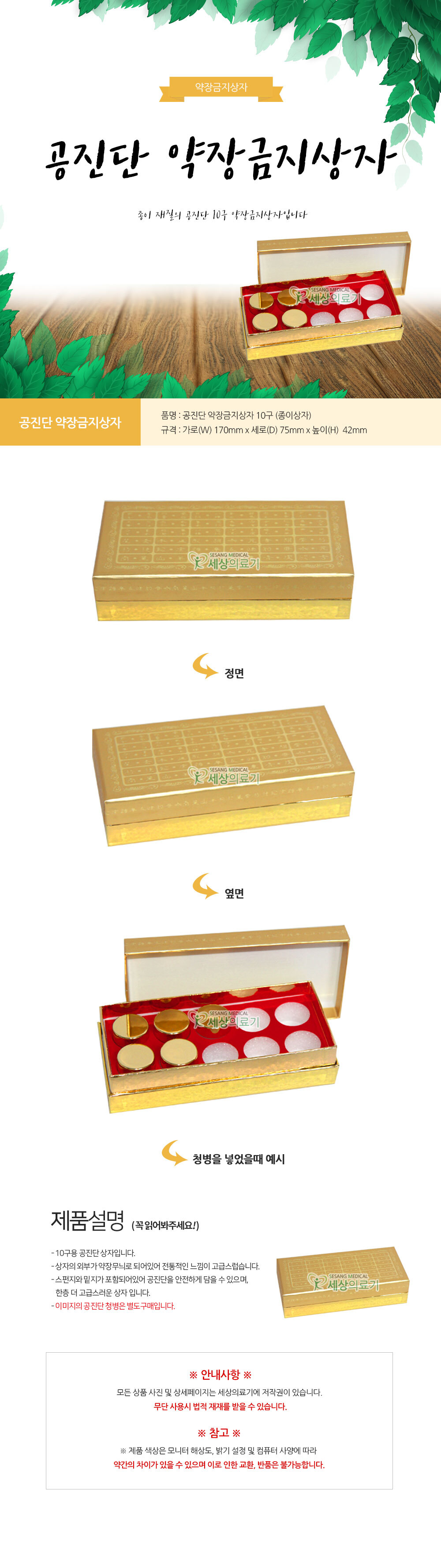 상품 상세정보에 별도 표기 |