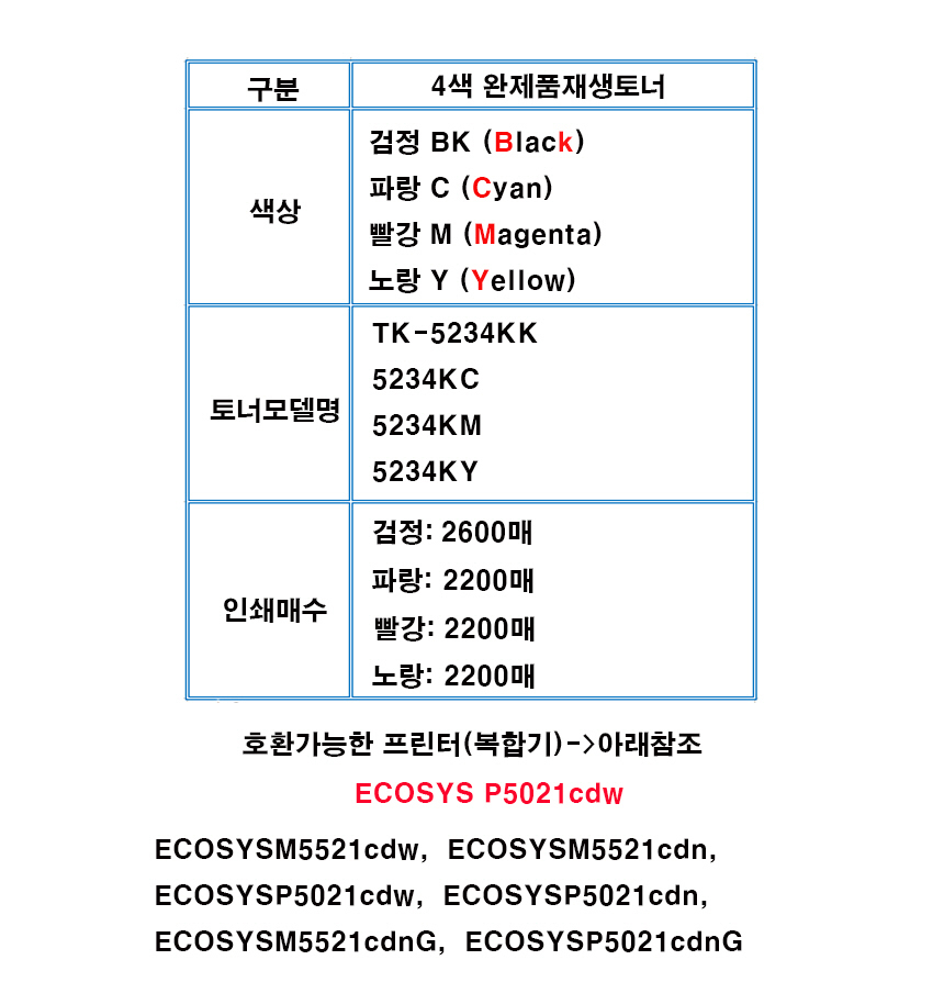 교세라미타(호환) ECOSYS P5021cdw 4색토너 선택