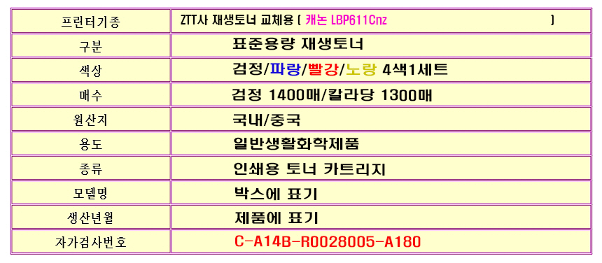 | 모델명 | CRG-045 BK/CRG-045 C/CRG-045 M/CRG-045 Y |