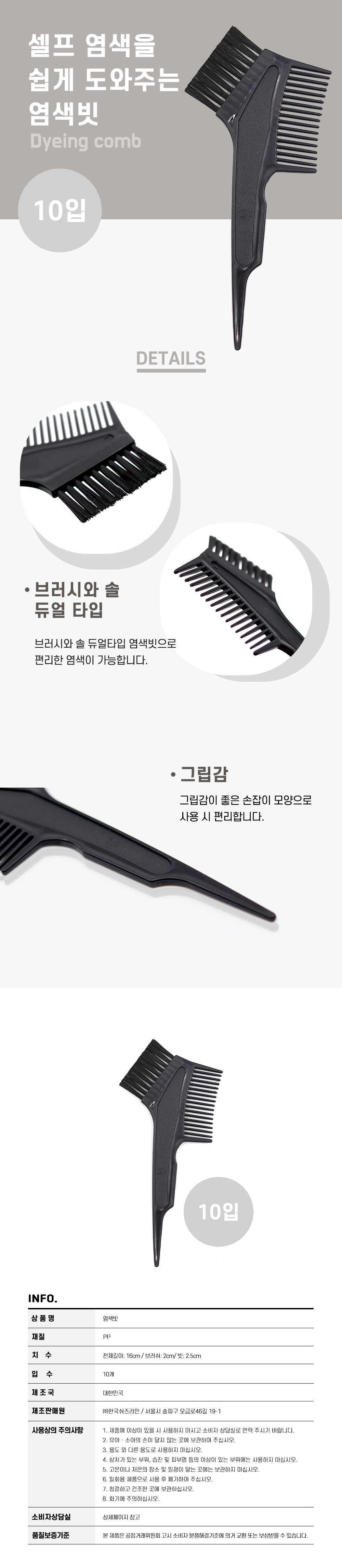 | 상품군 | 기타 | 품명 및 모델명 | 셀프 염색 염색 빗_10개 |
