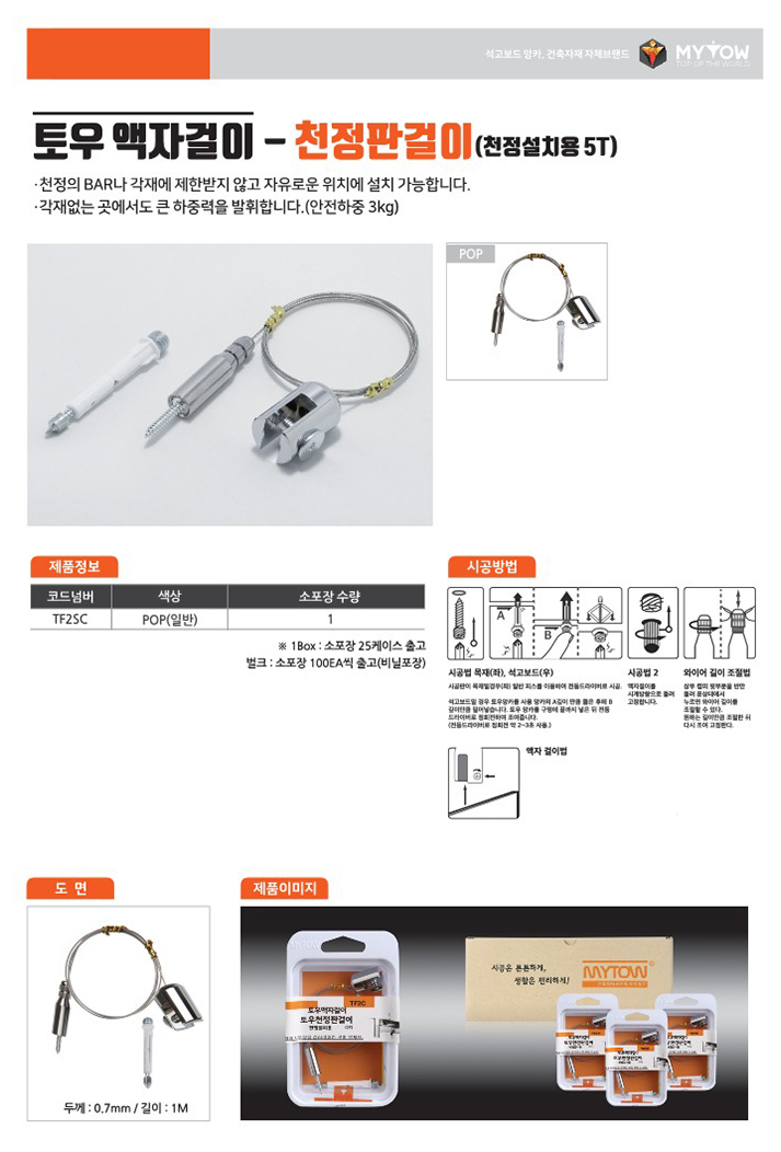 | 상품군 | 기타 | 품명 및 모델명 | 마이토우 토우 액자걸이 천정형 POP(일반) |