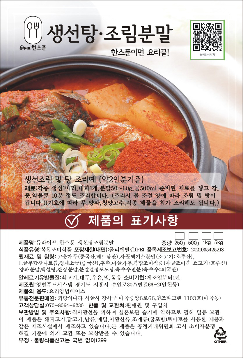 | 모델명 | 듀라이프 한스푼 생선,탕조림분말 250g |