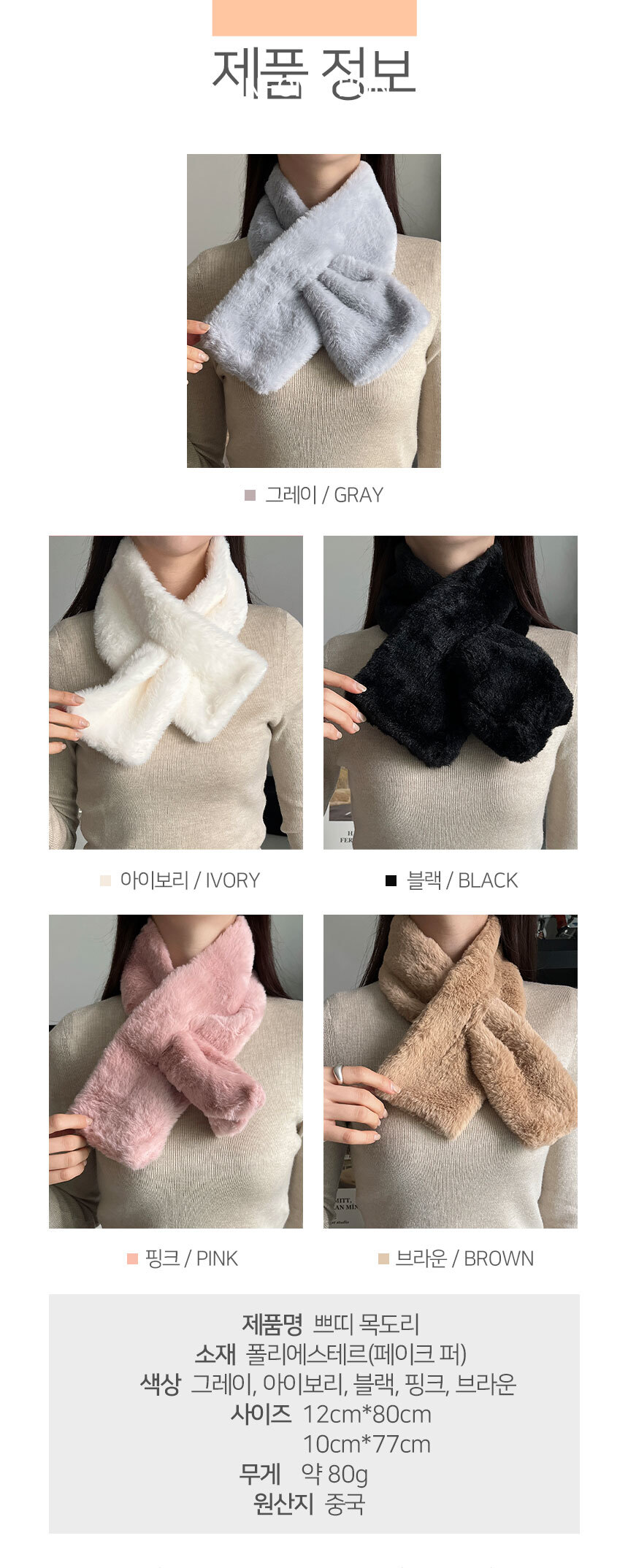 | 상품군 | 기타 | 품명 및 모델명 | 품명:뿌띠목도리 / 모델명:DO_5102 |
