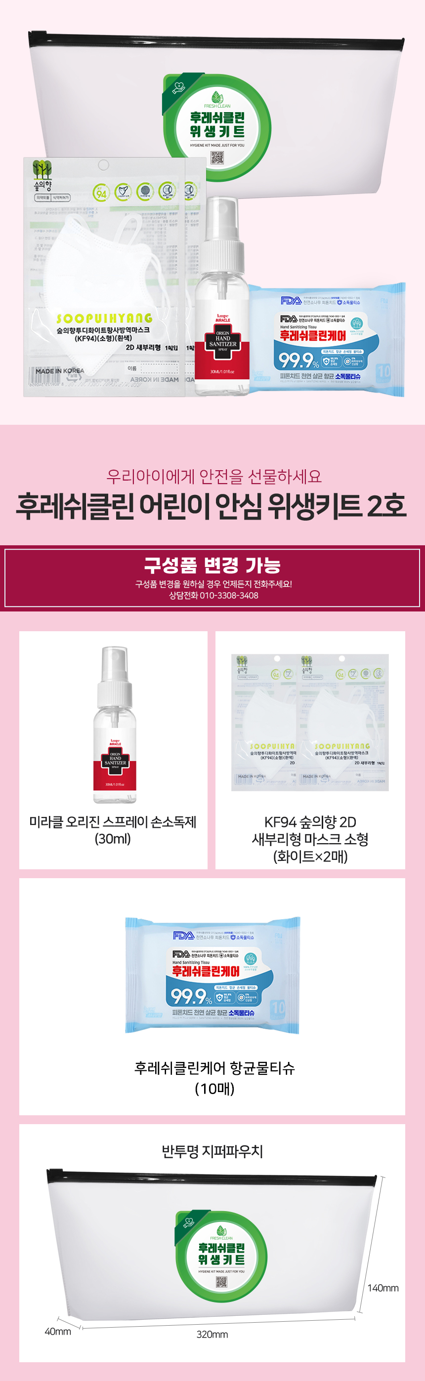 후레쉬클린 어린이 안심 위생키트 2호(30개이상 주문)