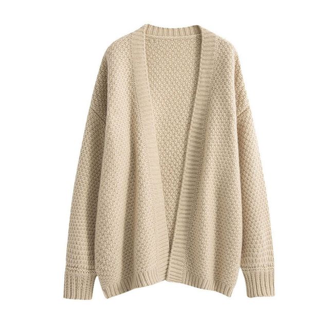 여성 데일리 긴팔 니트 노버튼 숄 가디건 간절기 심플