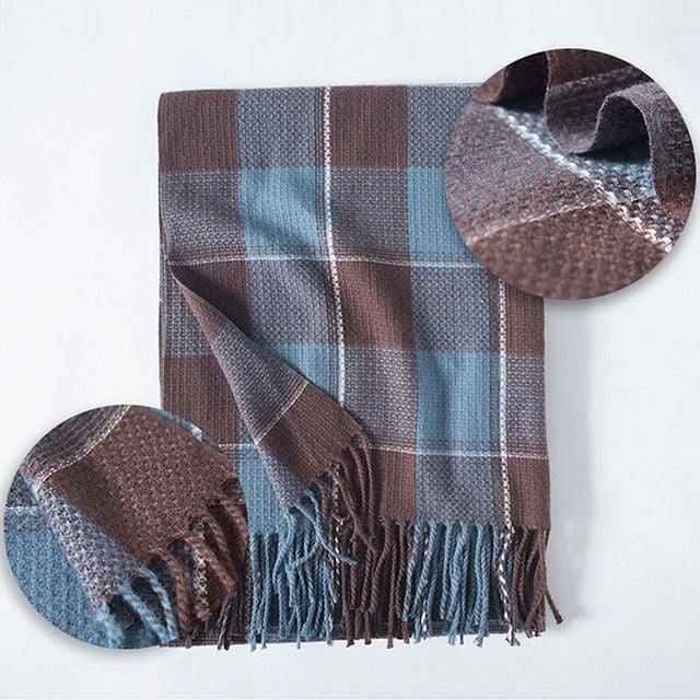 부드러운 체크 울 머플러 여성 남성 따뜻한 목도리