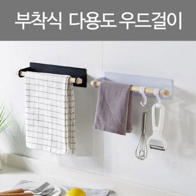 부착식 우드다용도걸이 주방걸이 욕실걸이 행거 수건