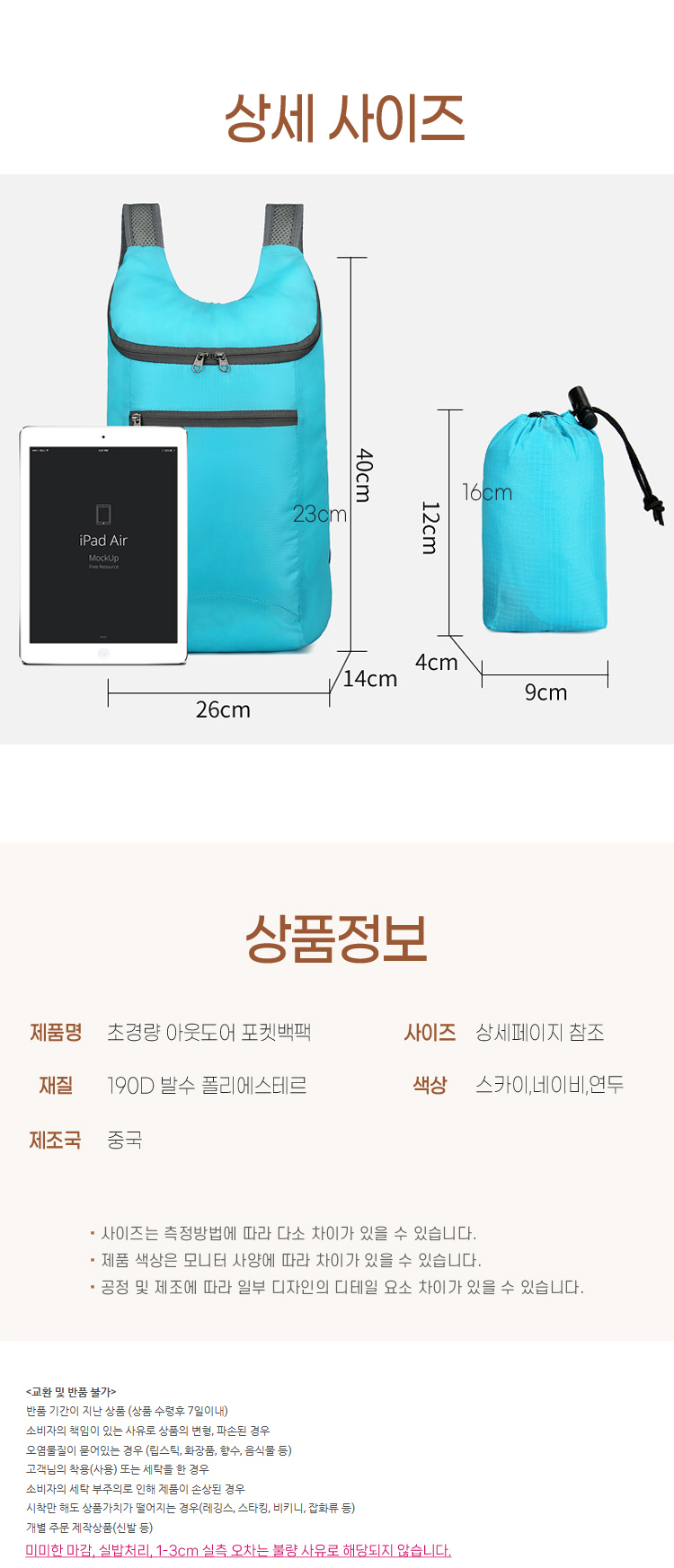 | 품질보증기준 | 상품 상세정보에 별도 표기 | A/S 책임자와 전화번호 | 판매자 연락처 참고 |