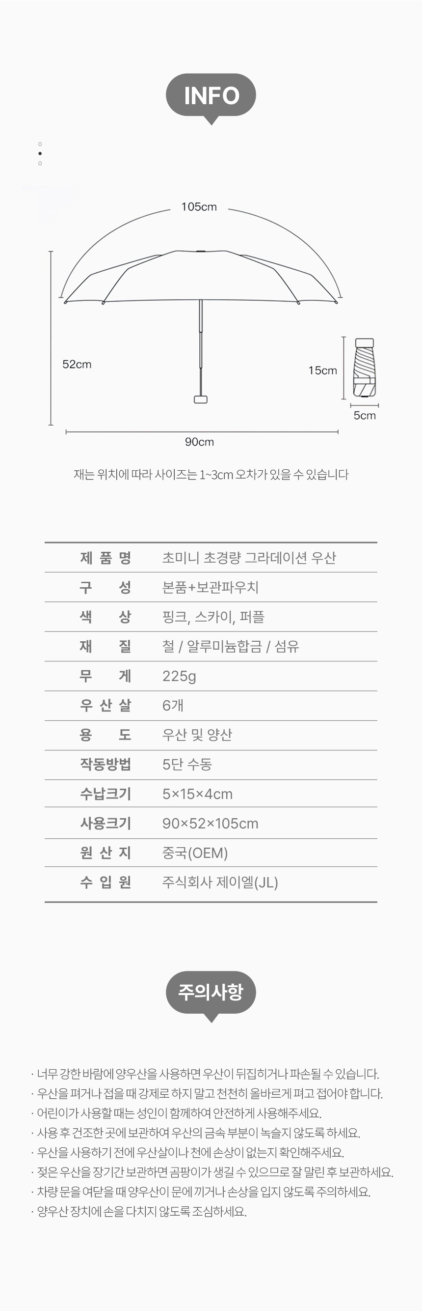 | 원산지 | 해외|아시아|중국 | 제조사/수입사 | 주식회사제이엘(OEM) |