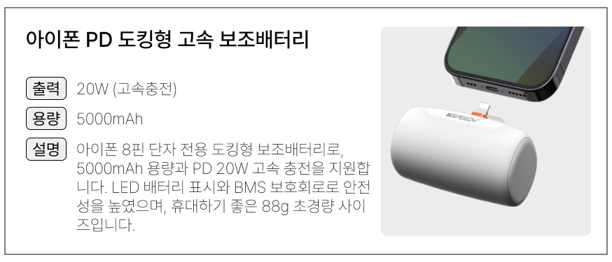 | 모델명 | 8핀 도킹형 보조배터리 5000mah |