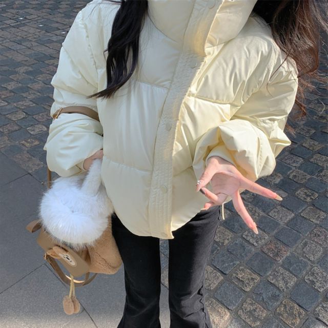 여성 무광 레더 하이넥 크롭 숏 패딩 점퍼 겨울 잠바