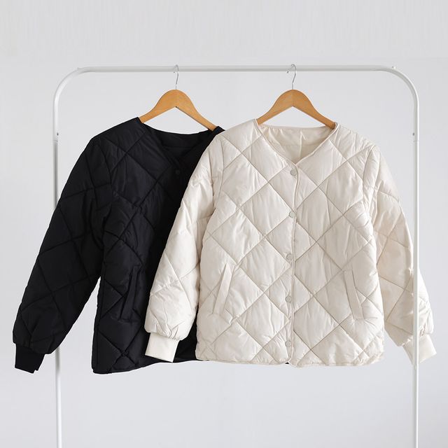 여성 노카라 똑딱이 퀼팅 경량 패딩 누빔 점퍼