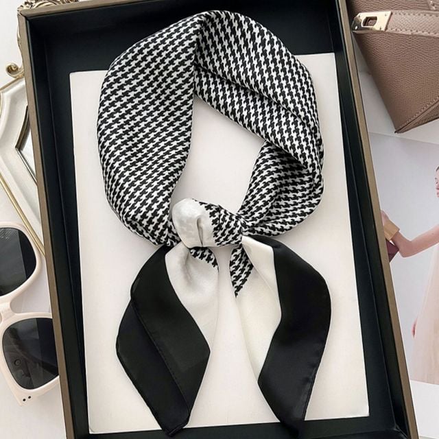 하운드 체크 고급 사각 쁘띠 스카프 미니스카프