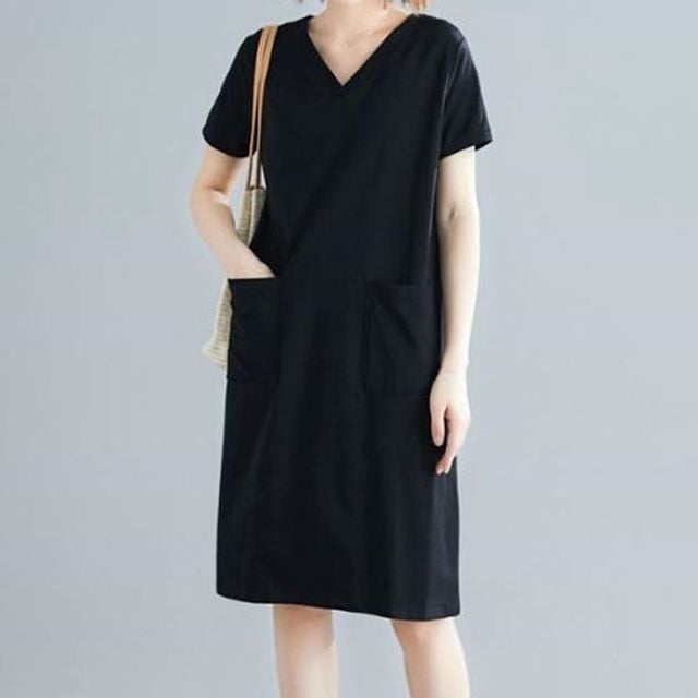 여자 반팔 원피스 데일리 브이넥 무지 여름 쉬폰 여성롱원피스