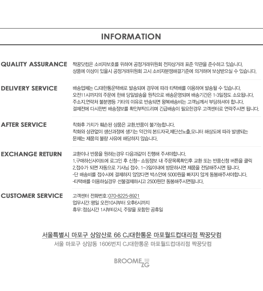 | 통화 가능 시간 | 11:00 ~ 17:00 공급사 특성상 배송 업무가 바쁠 때에는 통화가 어려울 수 있습니다. | ||