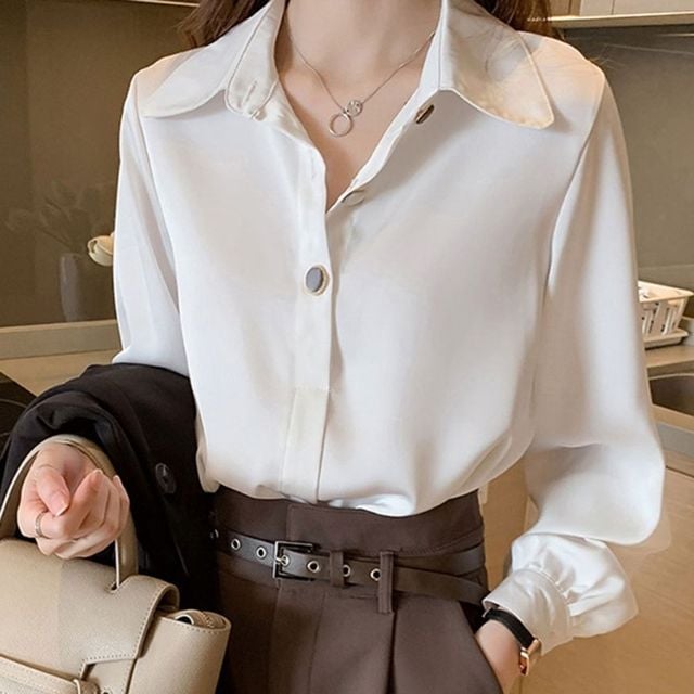 클래식 여성 블라우스 베이직 긴팔 화이트 여성셔츠 여성블라우스