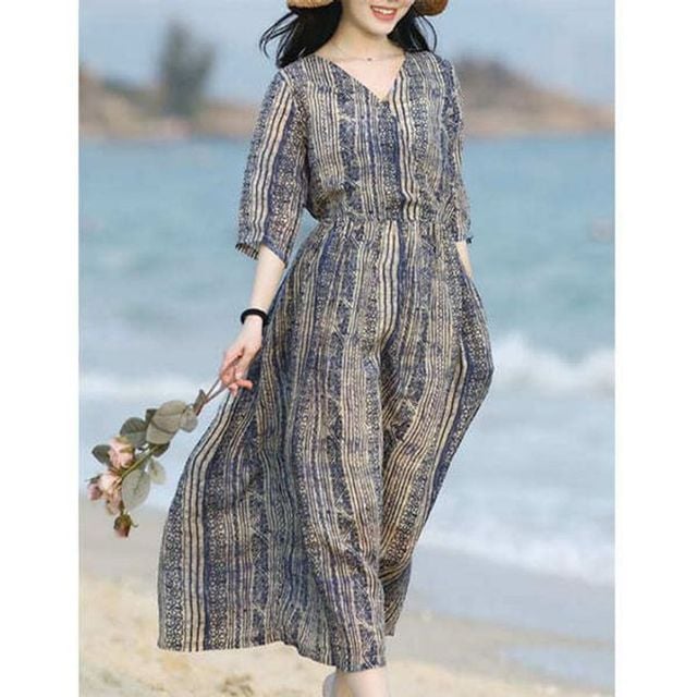 패턴 여성 롱원피스 휴양지룩 모시 반팔 치마 원피스 여름원피스