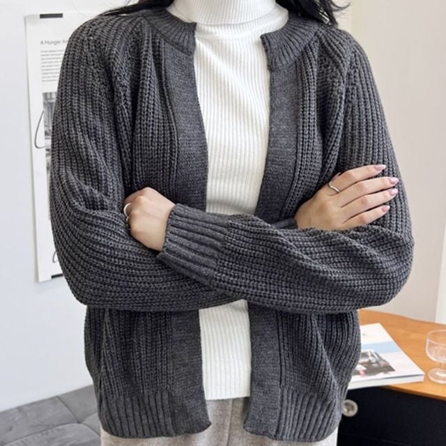 오픈 여성 니트 가디건 여자 골지 라운드 긴팔 가디건 여성겨울가디건 여자긴팔가디건