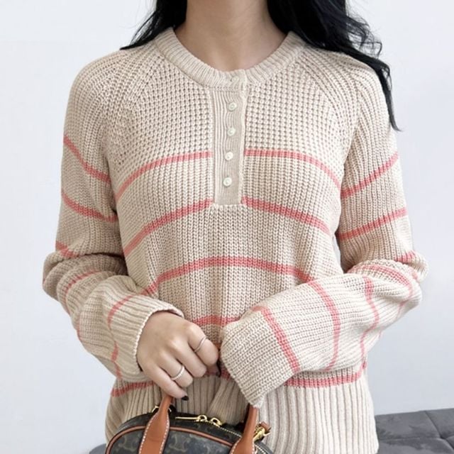 심플 여성 니트 여자 스트라이프 단가라 니트 긴팔 여성가을니트티 여자니트티셔츠 여성니트티