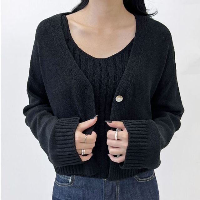 골지 여성 니트 나시 가디건 세트 브이넥 니트 가디건 여자니트나시 카디건 나시가디건세트