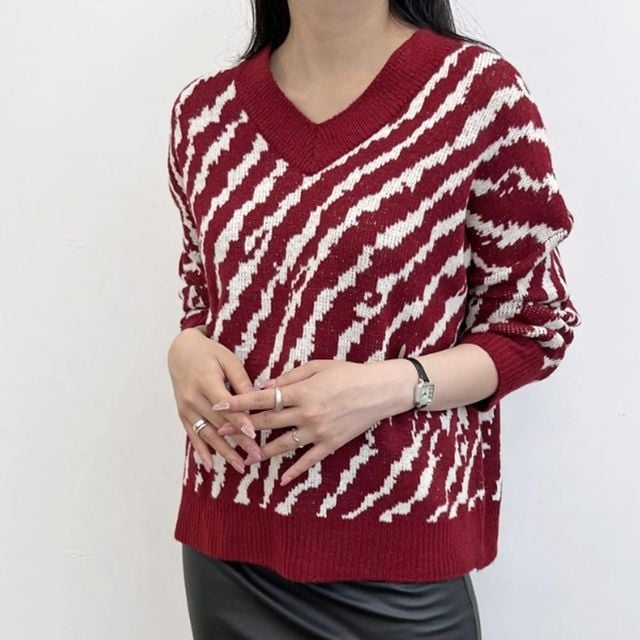 지브라 여성 니트 여자 겨울 가을 브이넥 니트 스웨터 여성니트티 가을여자니트 여성스웨터