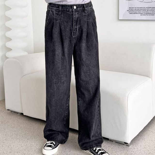 투턱 남자 바지 와이드 데님 팬츠 남성 흑청 바지 남성와이드팬츠 남자와이드청바지 남성청바지