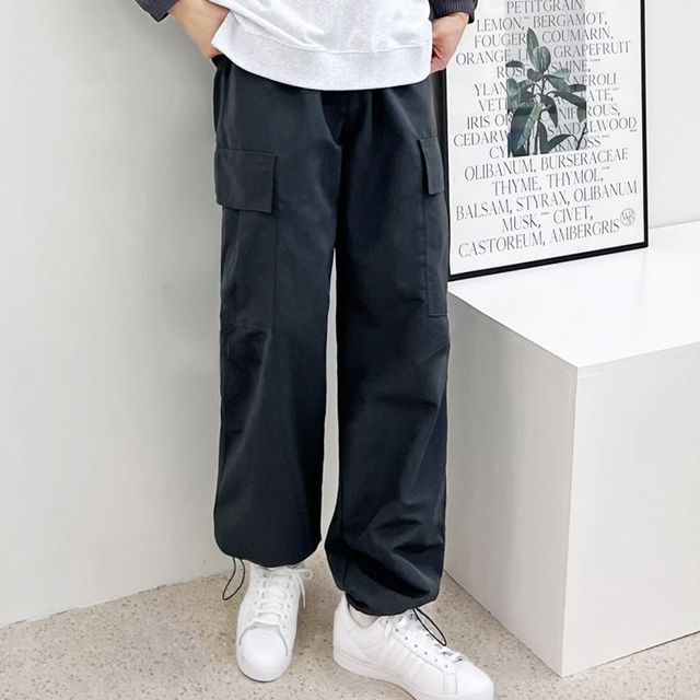 스트링 남자 카고 팬츠 와이드 바지 남성 조거 바지 남자면바지 츄리닝바지 남자와이드팬츠