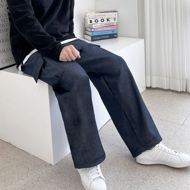 데님 남자 카고 바지 와이드 팬츠 스트링 기모 바지 스판카고바지 남자츄리닝바지 남자면바지