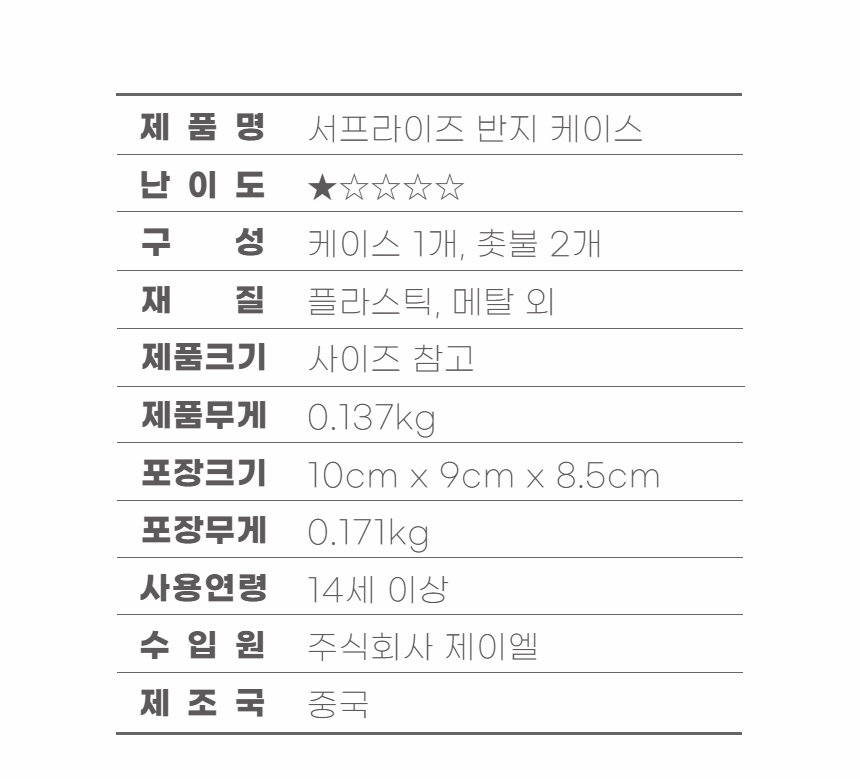 | 상품군 | 기타 | 품명 및 모델명 | 서프라이즈반지케이스(I love you) |