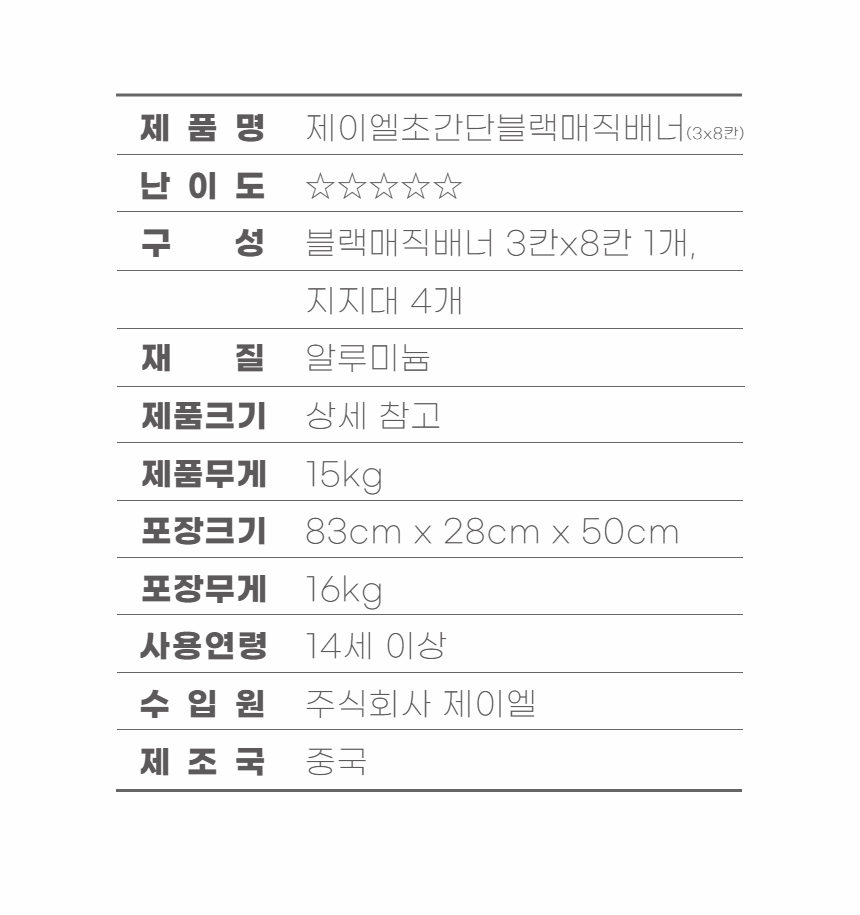| 모델명 | 제이엘초간단블랙매직배너3x8칸 |