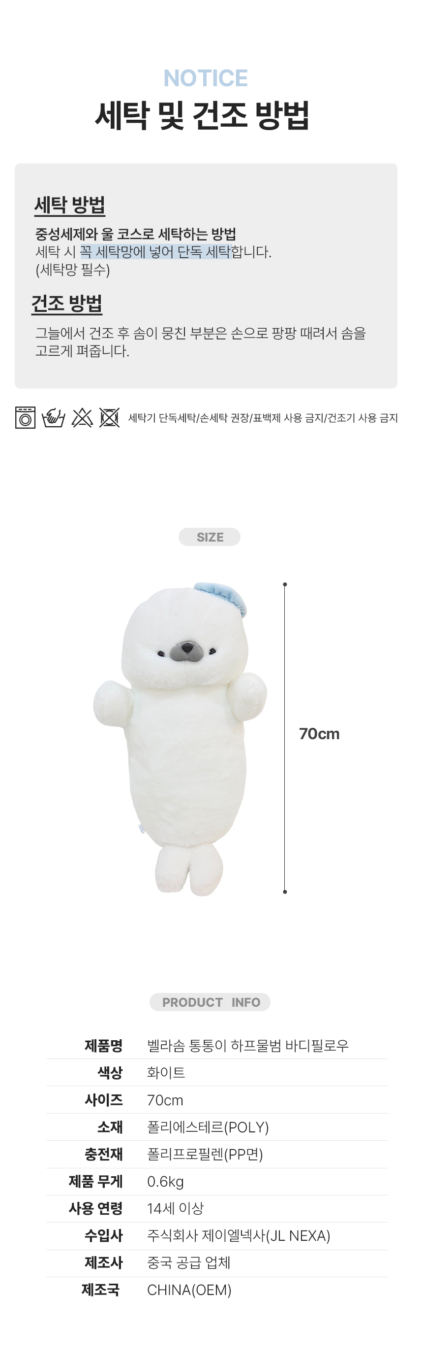 | 상품군 | 기타 | 품명 및 모델명 | 벨라솜 통통이 하프물범 바디필로우 |