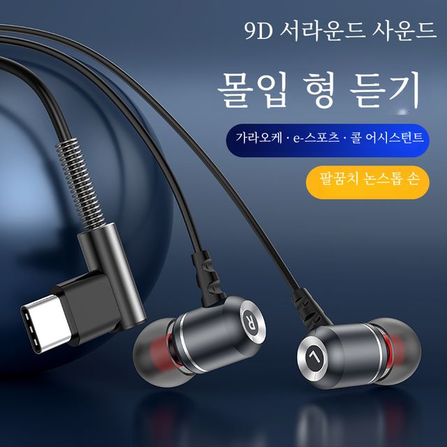 플랫 마우스 휴대폰 유선 제어 인이어 메탈 유선 헤드