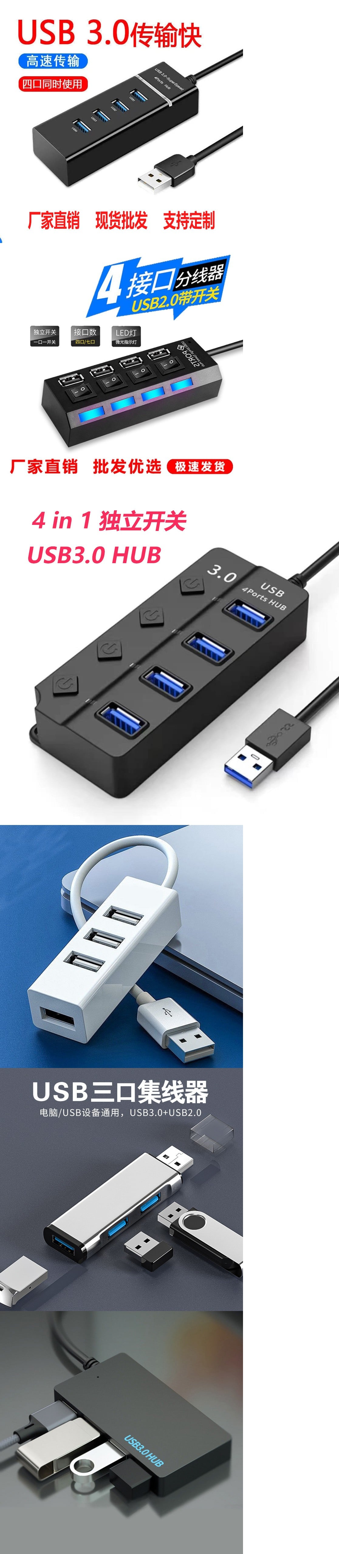 소스 제조업체 4 USB 스플리터 USB 허브 USB 익스텐더