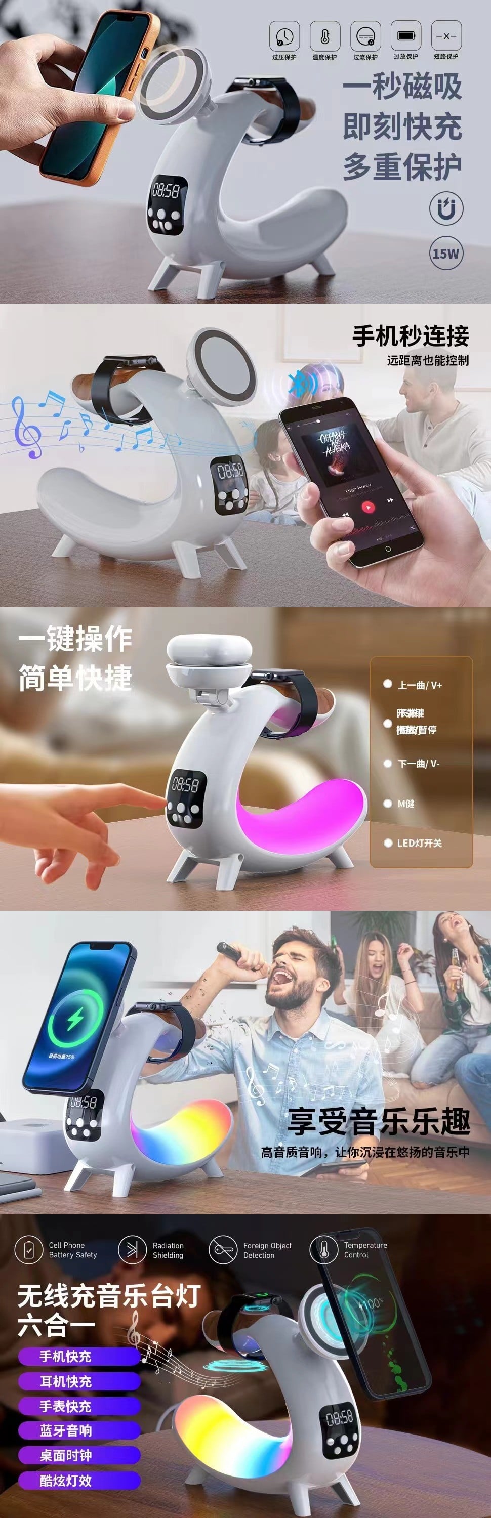 무선 블루투스 스피커 RGB 다기능 휴대 전화 시계