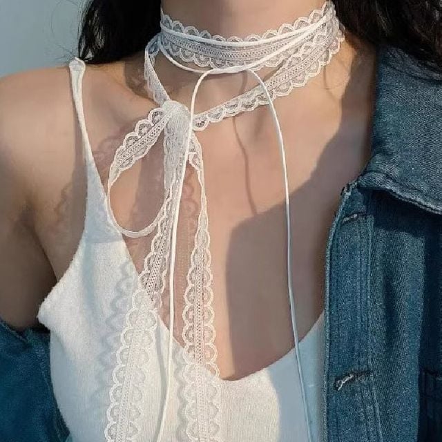 스카프 헤어스카프 쁘띠 리본 레이어드 레이스 초커스카프 ST8402