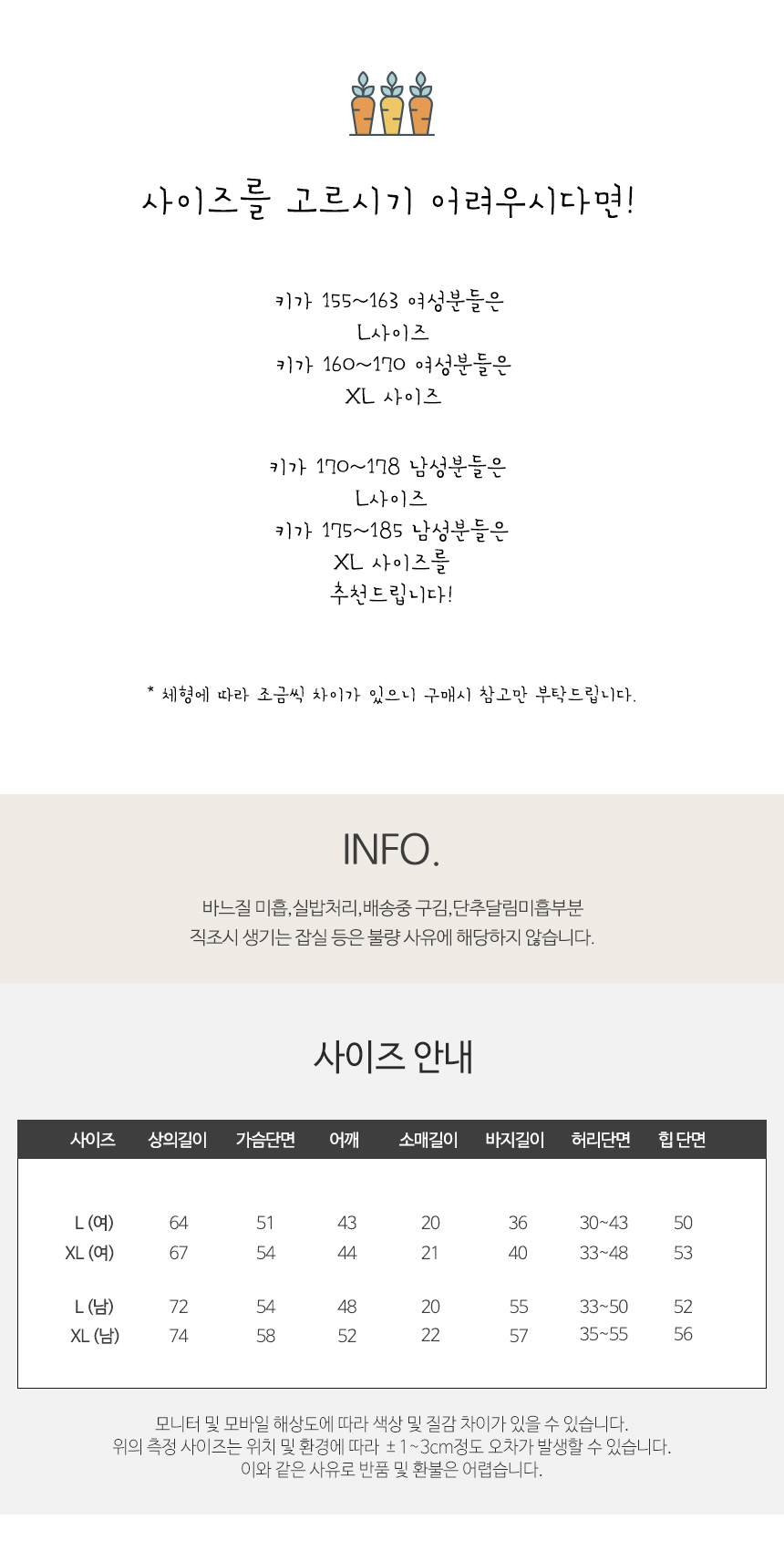 | 색상 | 머스타드,화이트,민트,그레이 | 치수 | L,XL |