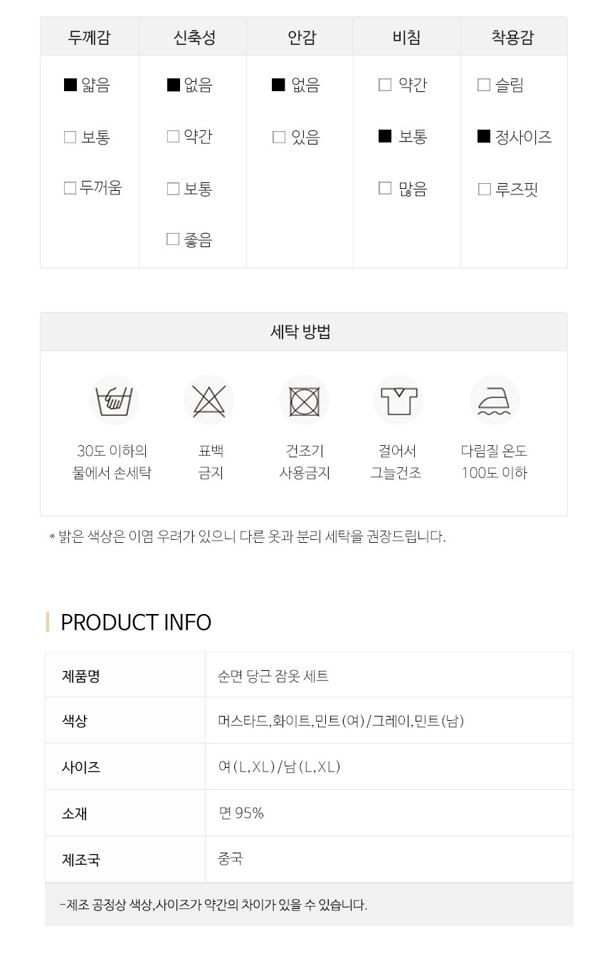 | 상품군 | 의류 | 제품소재 | 순면95% |