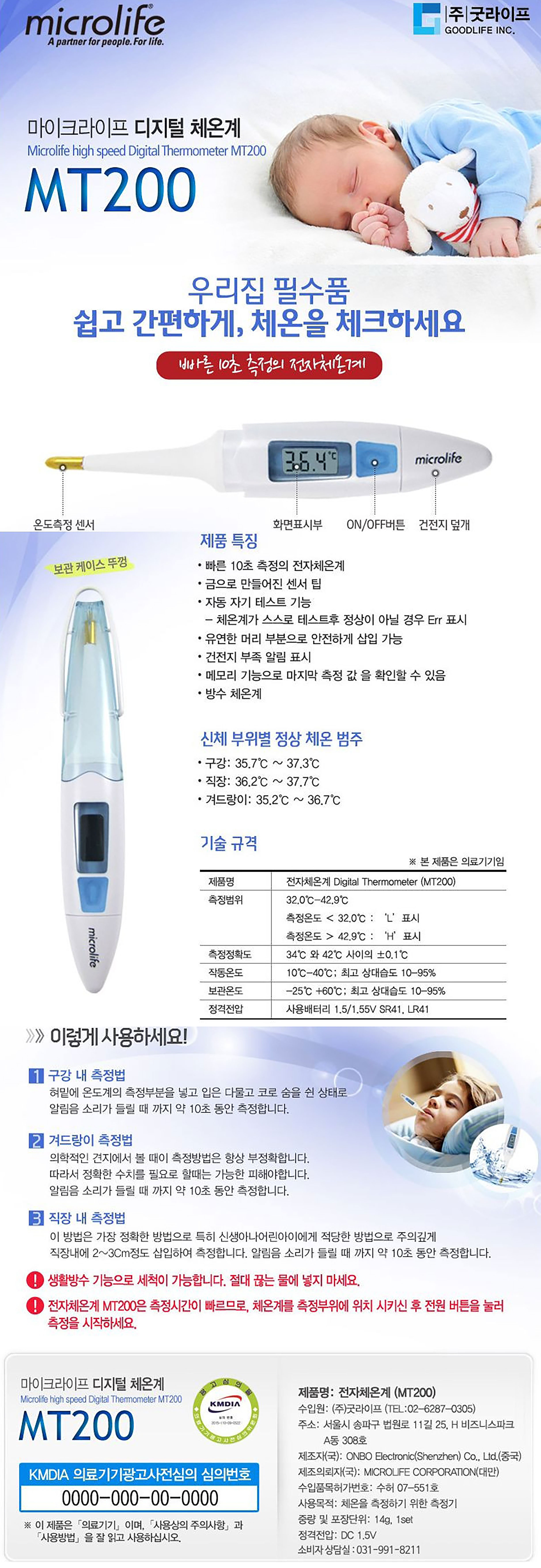 마이크로라이프 디지털 체온계 MT200