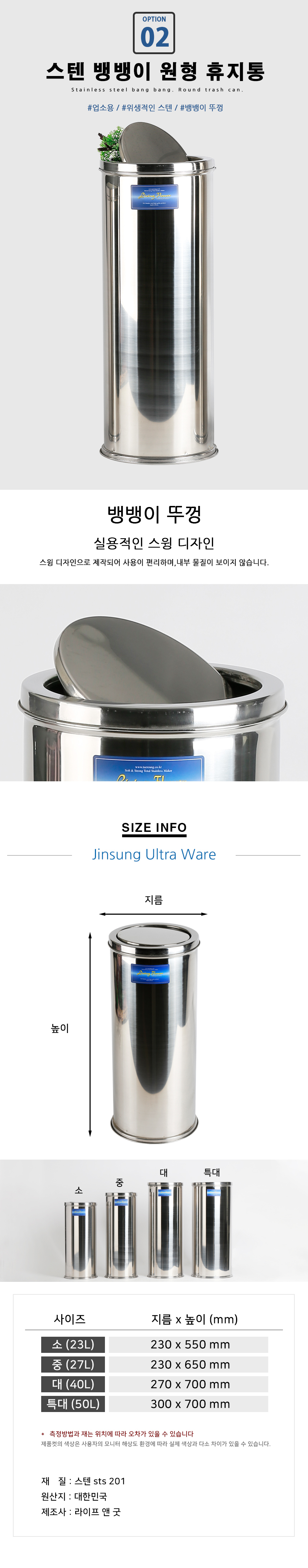 | 상품군 | 기타 | 품명 및 모델명 | 품명:원통휴지통 특 50L / 모델명:T5050 |