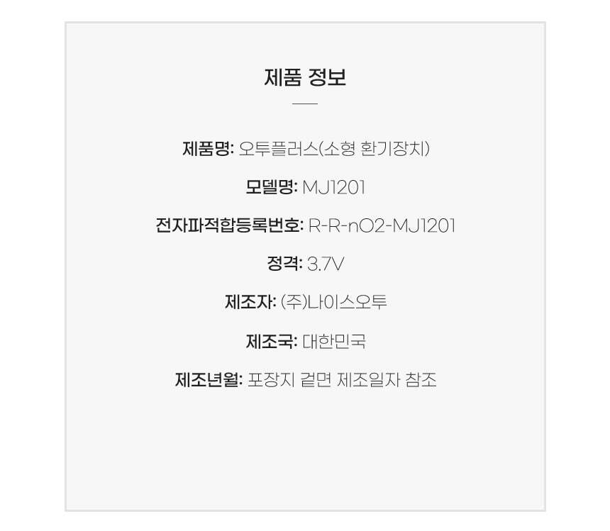 | 원산지 | 국내|인천|서구 | 제조사/수입사 | 나이스오투 |