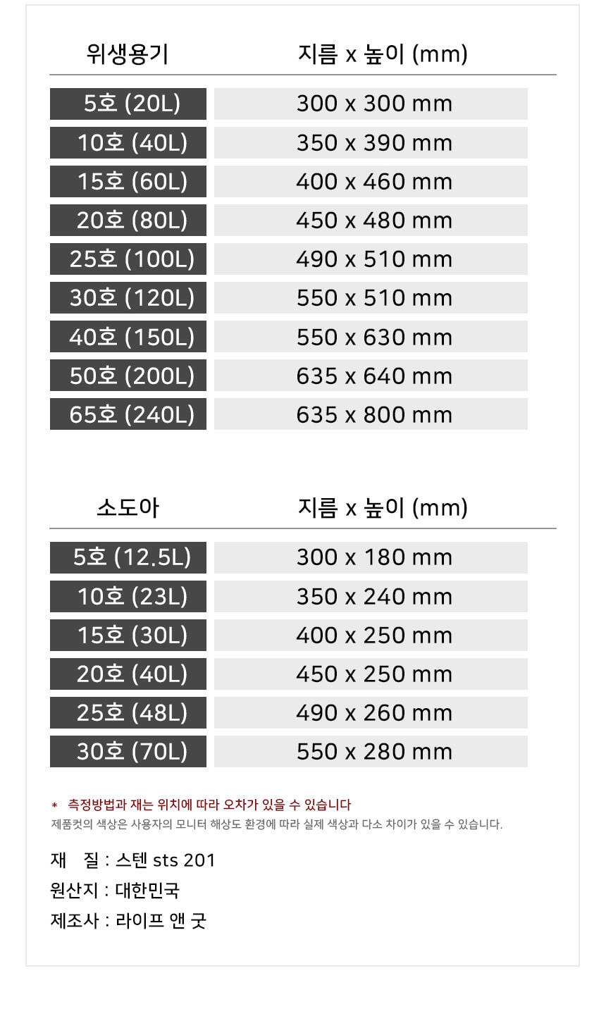 | 원산지 | 국내|인천|서구 | 제조사/수입사 | 라이프앤굿 |