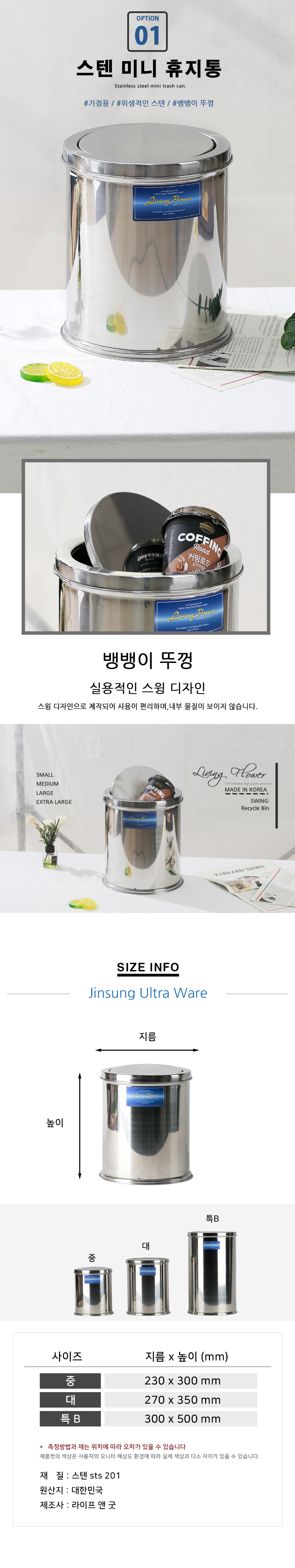 | 상품군 | 기타 | 품명 및 모델명 | 품명:미니휴지통 특B / 모델명:M9966 |