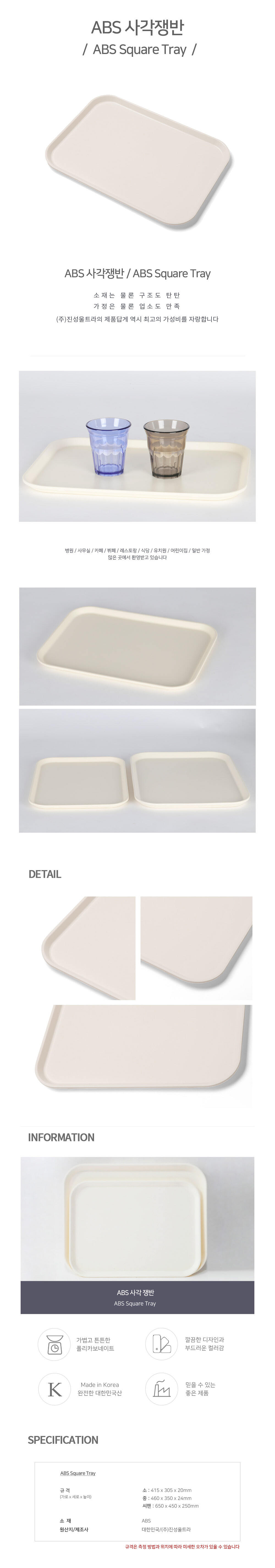 | 상품군 | 주방용품 | 품명 및 모델명 | 품명:ABS 사각 쟁반 급식용 소 1216 바닐라 / 모델명:R4991 |