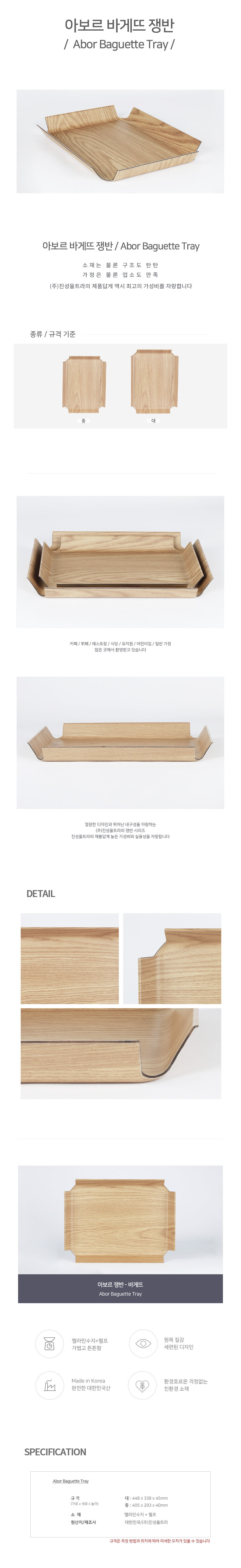 | 상품군 | 주방용품 | 품명 및 모델명 | 품명:아보르 바게뜨쟁반 중 / 모델명:P8764 |