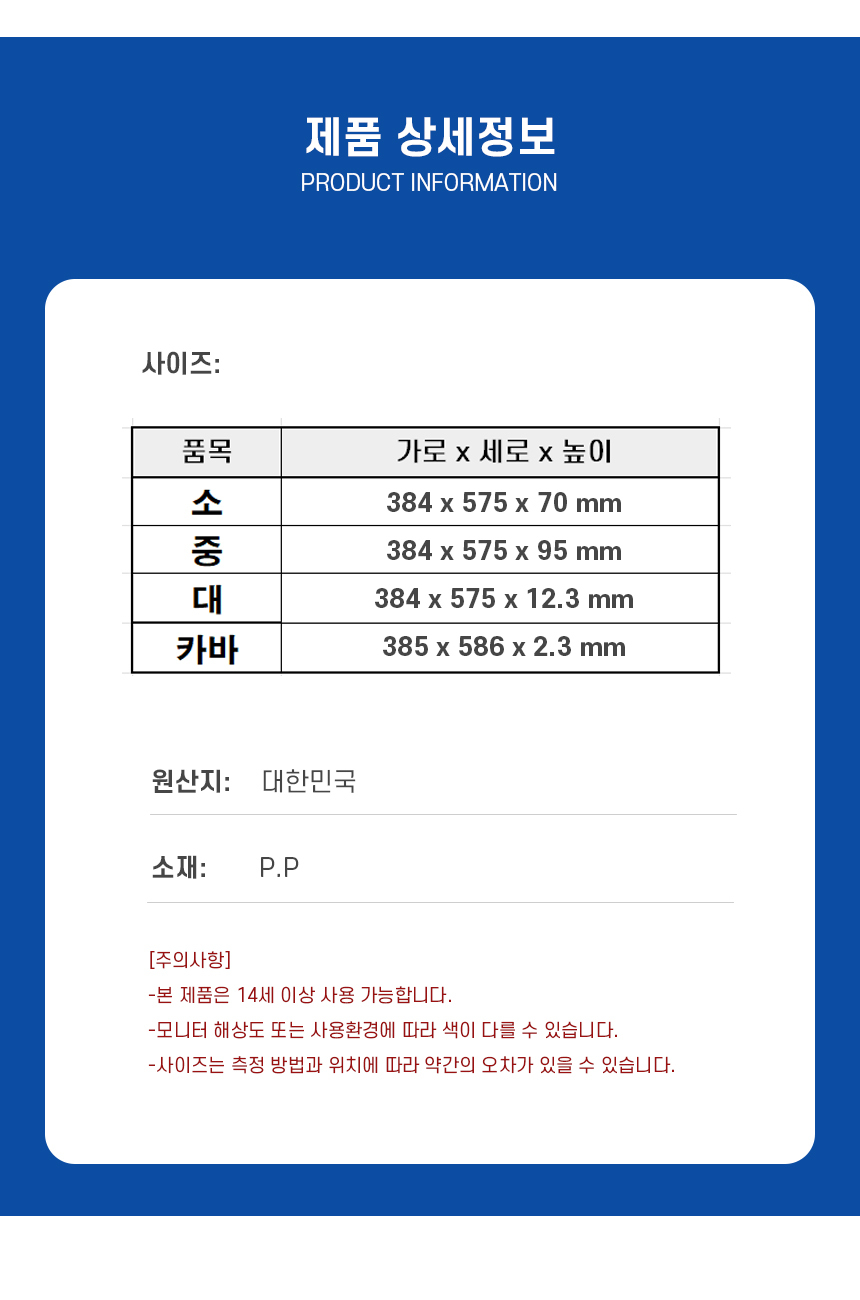 | 크기 | 크기:384x575x70 | 동일모델의 출시년월 | 제조연월:0001-01-01 |