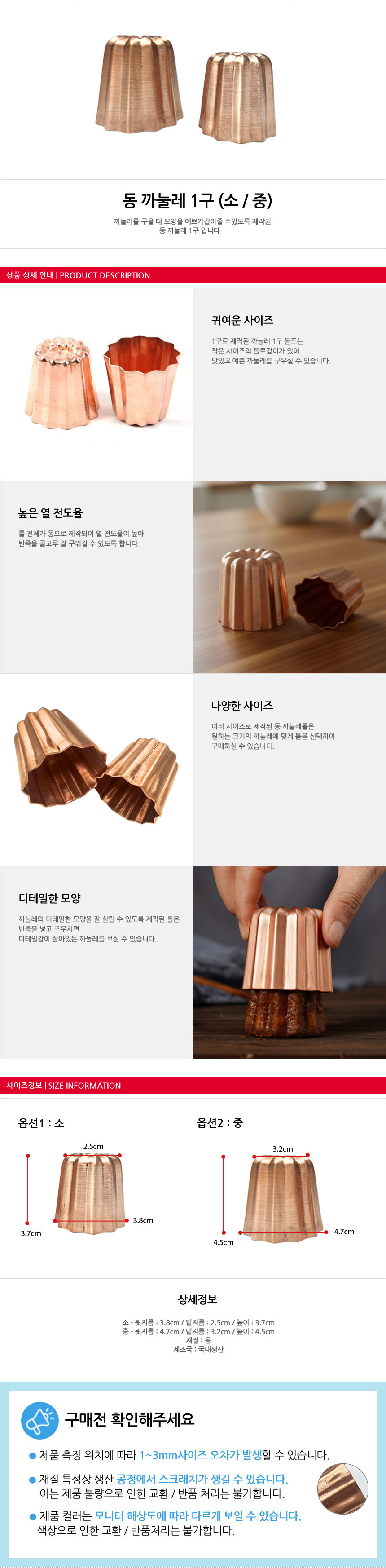 | 재질 | 동 | 구성품 | 까눌레 2종 택1 |