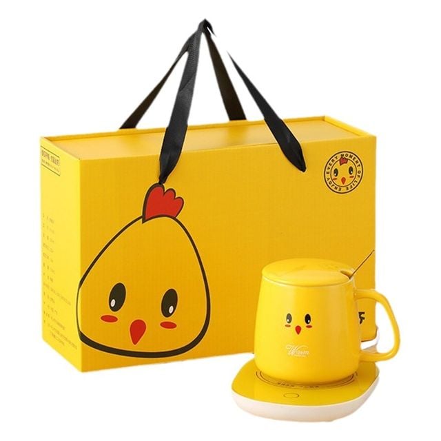 만화 작은 노란 오리 55 도 일정한 온도 컵 세라믹 따