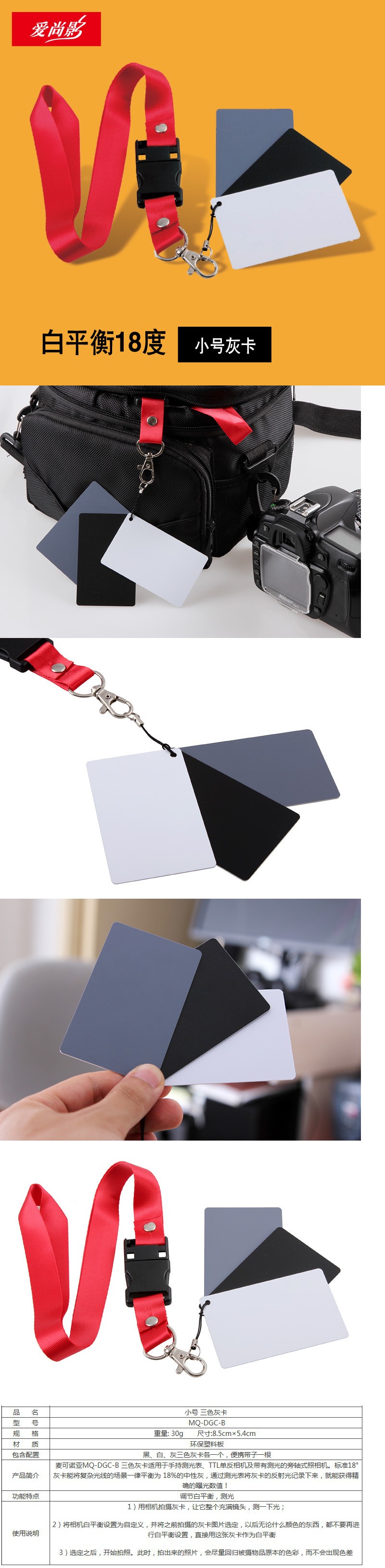 화이트 밸런스 18 도 스몰 사이즈 그레이 카드 블랙