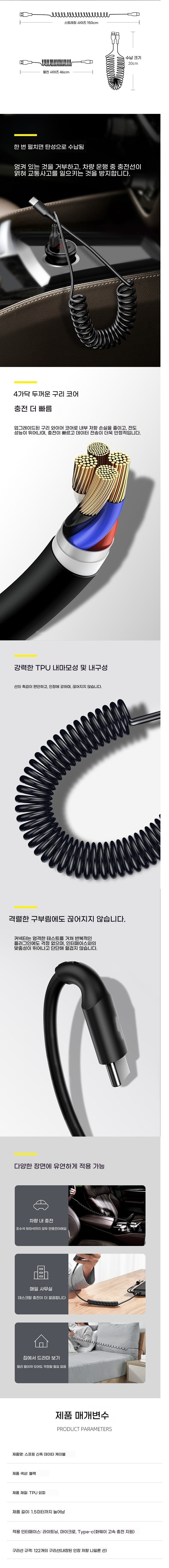 5A 스프링 데이터 케이블 텔레스코픽 충전 케이블 애